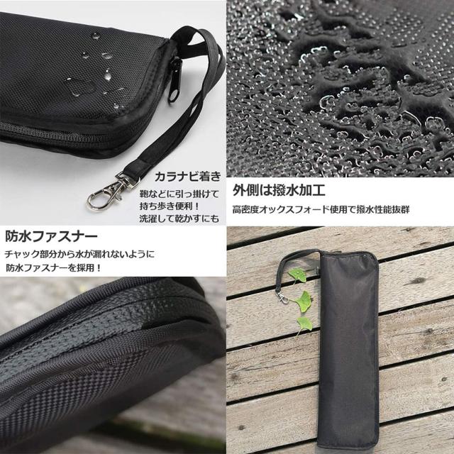 【360度全面防水】傘カバーは防水性が高いジッパーを採用しております。外側の高密度の生地も撥水性が高く、吸収した水分は外側に滲み出にくい。ジッパーはスムーズに開閉でき、内側の水分がしっかりと密閉できます。