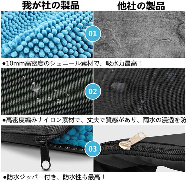 【抜群な吸水性】内側全面の超吸水シェ二ール織物素材を採用して、濡れた傘についた水滴をすばやく吸収する便利な傘カバーです。これがあれば鞄の中の書類にも安心です。通勤通学、訪問先や電車バスに乗る際のわずらわしさが解消されます。電車の中に周りの人に迷惑をかけずに済みます。【360度全面防水】傘カバーは防水性が高いジッパーを採用しております。外側の高密度の生地も撥水性が高く、吸収した水分は外側に滲み出にくい。ジッパーはスムーズに開閉でき、内側の水分がしっかりと密閉できます。