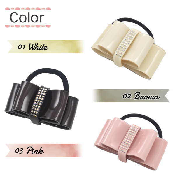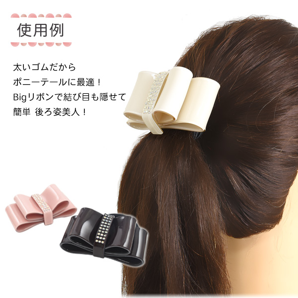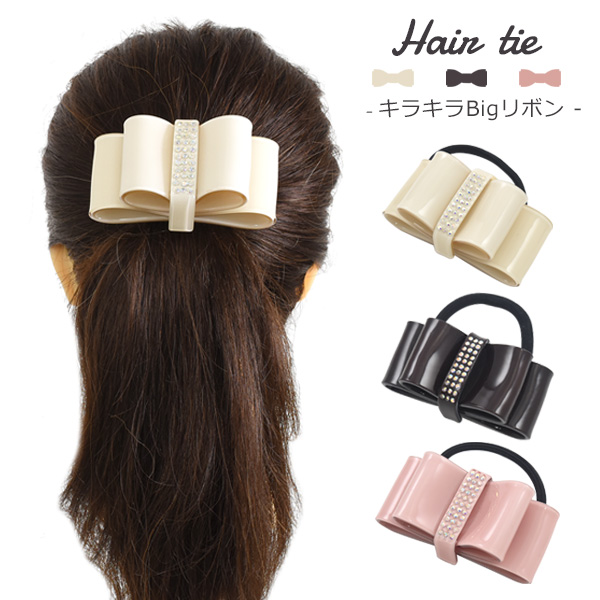 ヘアアクセサリー ヘアゴム キラキラBigリボン ラインスト—ン 上品 簡単 結ぶだけ 一つ結び かわいい 華やか まとめ髪 ポニーテール 白 茶 ピンク 髪飾り レディース 女性 女子 かわいい オケージョン 式典 入園 入学式 卒園 卒業 参観日 普段使い