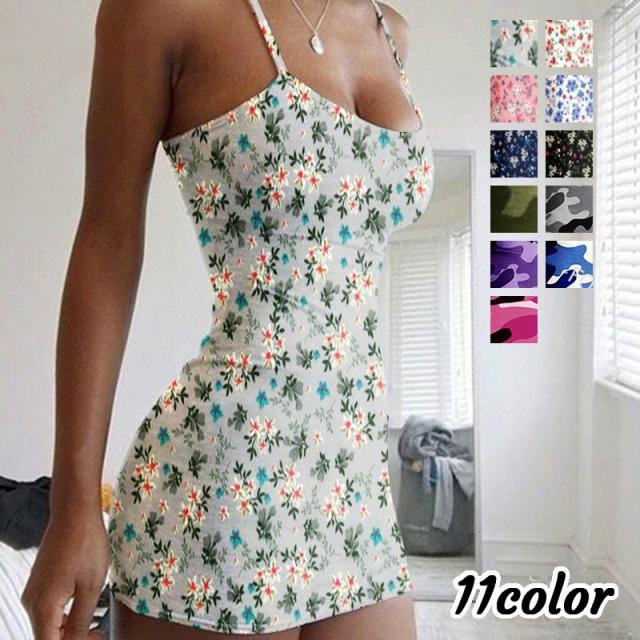 キャミソールワンピース レディース 婦人服 ノースリーブ 肩紐 マイクロミニ丈 ショート丈 膝上丈 タイト 花柄 フラワープリ