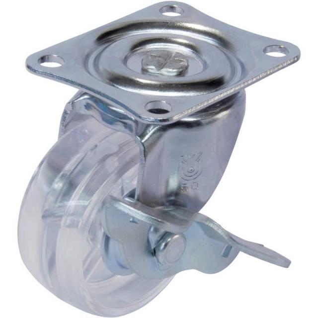 ユーエイキャスター スケルトンキャスター自在車S付 50径ポリカーボネート車輪(透明) G50PCS