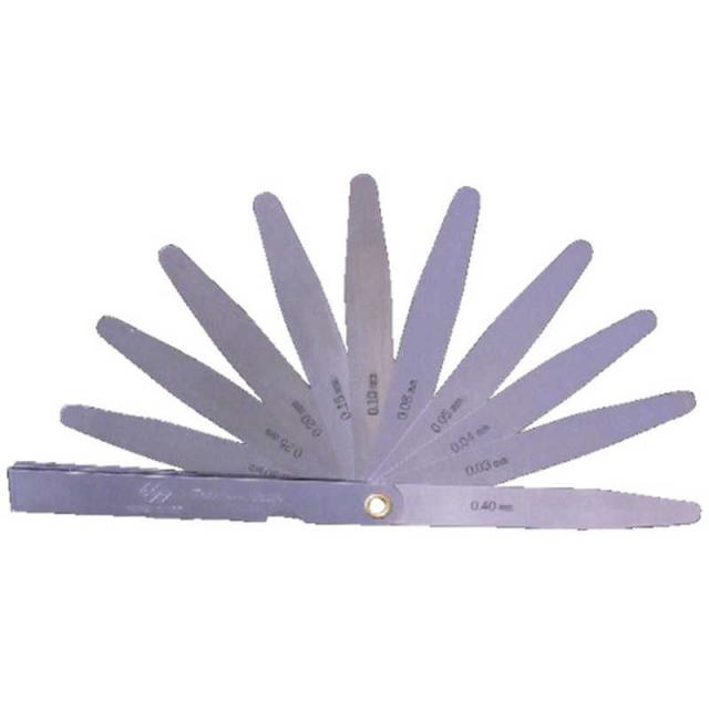 長さ(mm):100、リーフ形状:B、枚数(枚):10、セット明細(mm):0.03、0.04、0.05、0.08、0.10、0.15、0.20、0.25、0.30、0.40(ケースに目盛付)、質量(g):43