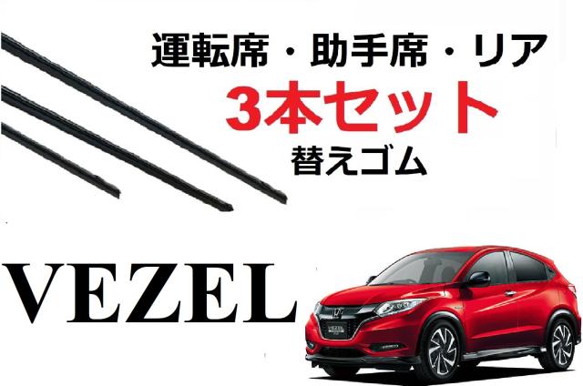 VEZEL ワイパー 替えゴム 適合サイズ ホンダ 純正互換品 フロント2本 リア1本 合計3本 交換 セット 運転席 助手席 リア サイズ ヴェゼル ベゼル RU1 RU2 RU3 RU4 SmartCustom