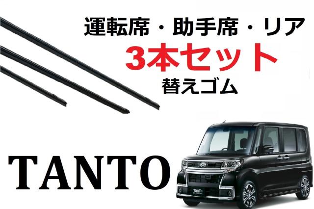 タント ワイパー 替えゴム 適合サイズ LA600S LA610S DAIHATSU純正互換品 フロント2本 リア1本 合計3本 交換 セット 1車体分 運転席・助手席 tanto タントカスタム サイズ ラバー SmartCustom