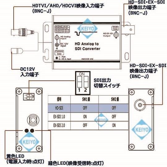 HDTVI・AHD・HDCVI信号をHD-SDI・EX-SDI信号に変換できる