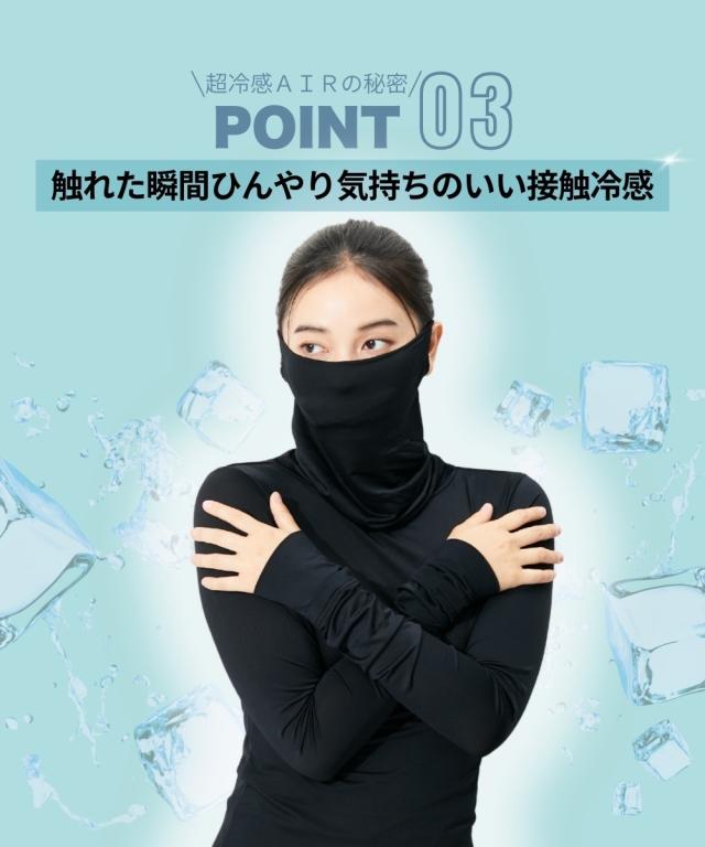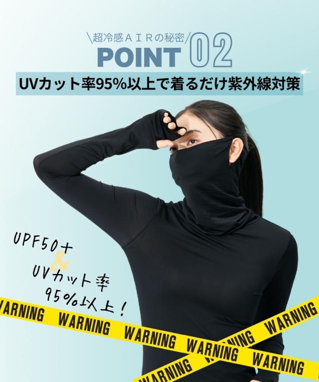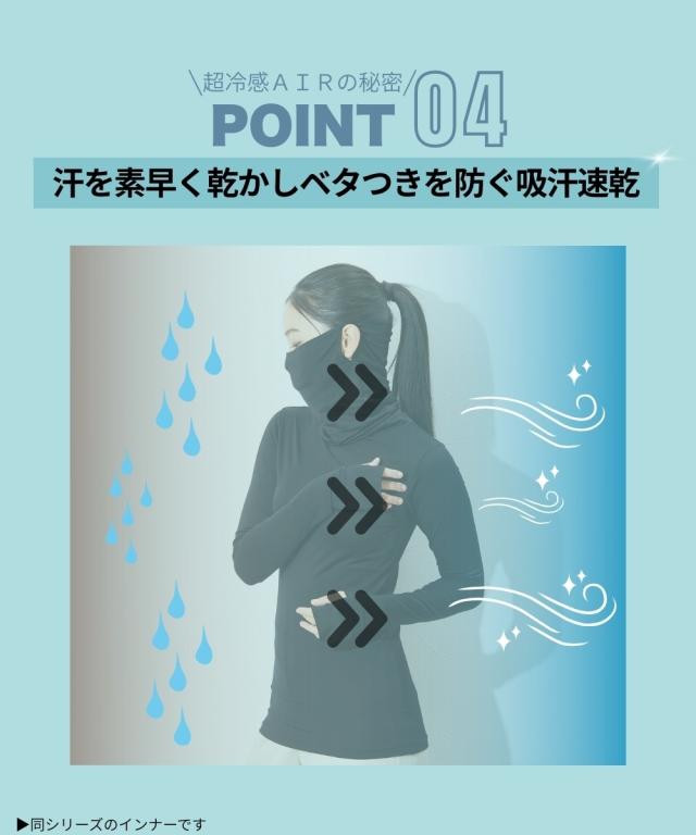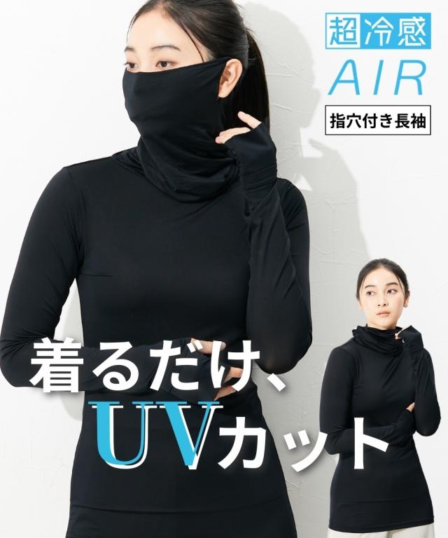 超冷感AIR 指穴付きロング丈鼻まですっぽりタートル長袖インナー(接触冷感・吸汗速乾・UVカット)
