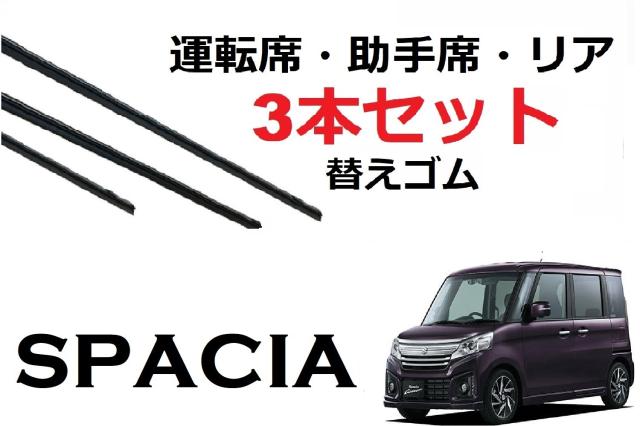 スペーシア ワイパー 替えゴム 適合サイズ フロント2本 リア1本 合計3本 交換セット SUZUKI 純正互換品 運転席 助手席 SPACIA MK32S MK42S ラバー Mazda フレアワゴン MM32S MM42S SmartCustom