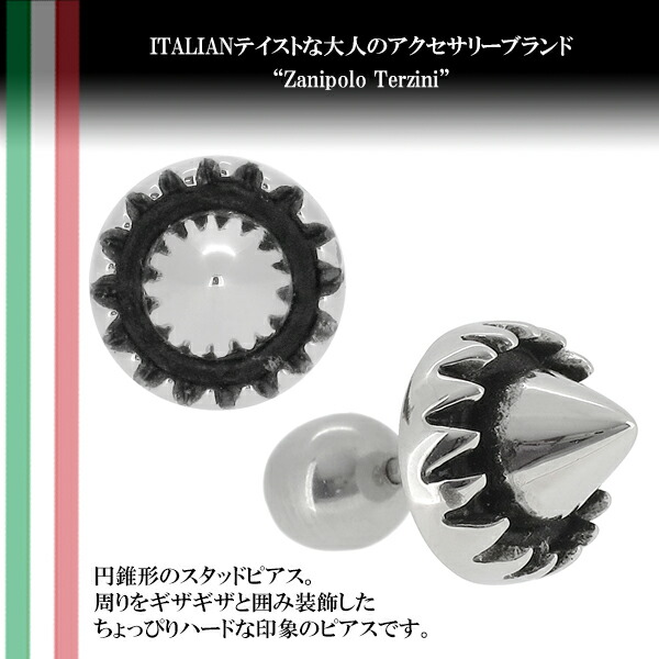 コーン サージカルステンレス ピアス 1P 片耳用 Zanipolo Terzini メンズ ステンレス 男性 金属アレルギー 円錐 メンズピアス 男性用 ブランド