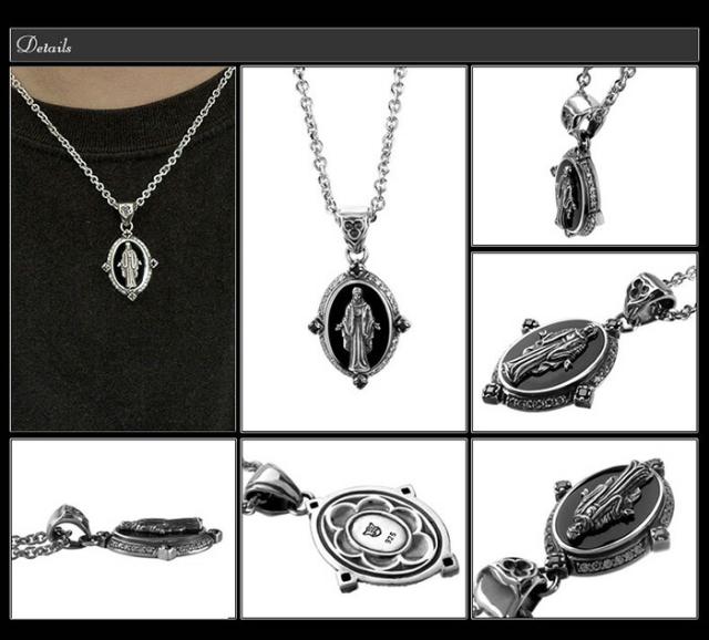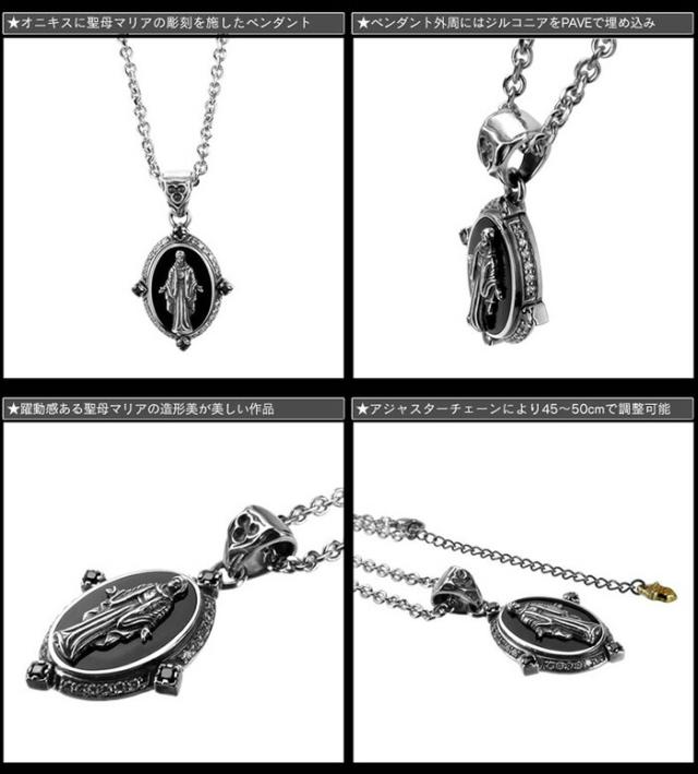 オニキスと重ねたシルバーに、繊細な聖母マリアの彫刻を施したペンダント。