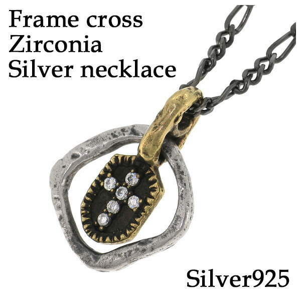 ジルコニアで輝くクロスが味わいのあるフレームで囲まれたネックレスです。