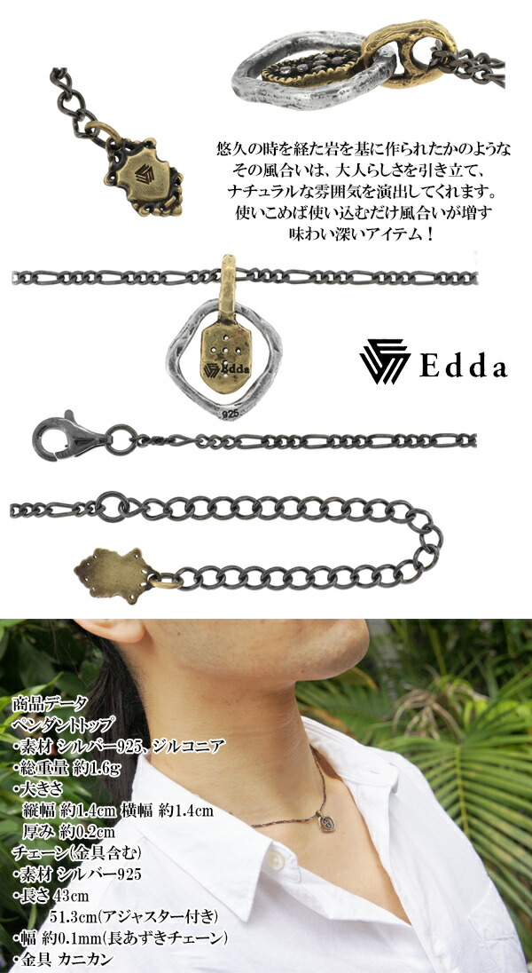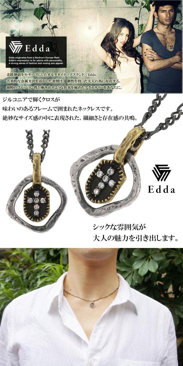 Edda エッダ フレーム クロス ジルコニア シルバーネックレス専用ギフトBOX付き メンズ ネックレス シルバー シルバー925 シルバー ブランド