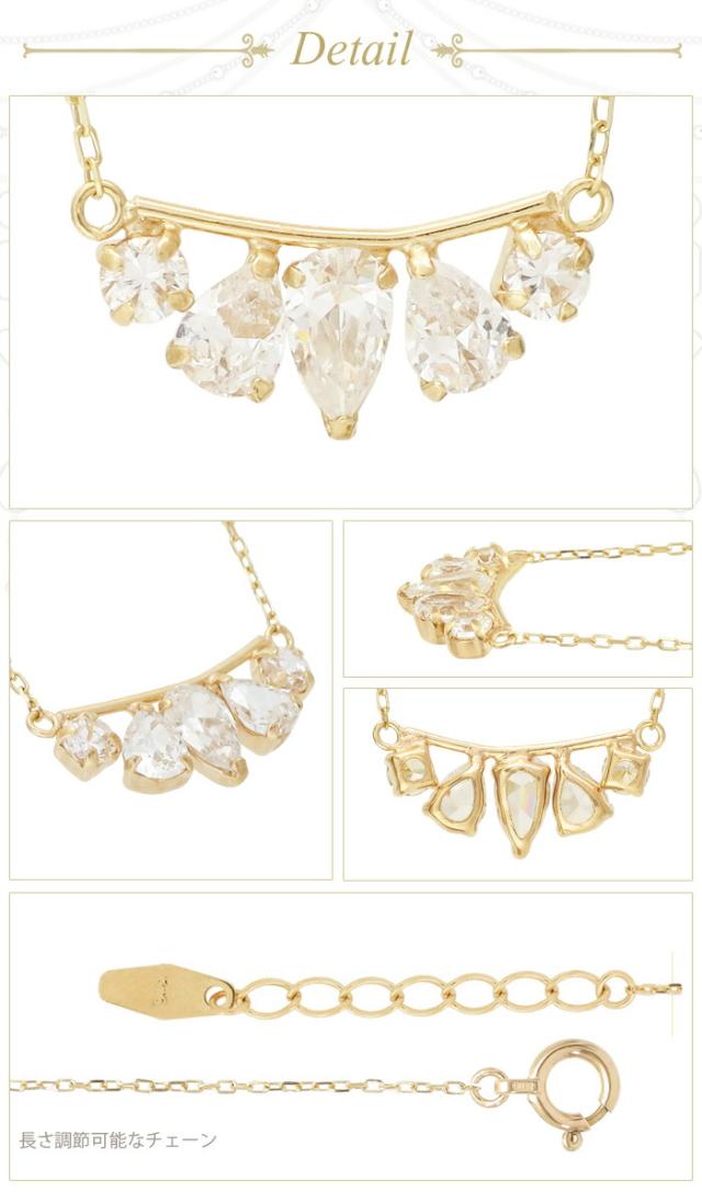 ラウンドやしずく型などのカットの違うジルコニアが贅沢にあしらわれたアイテム。