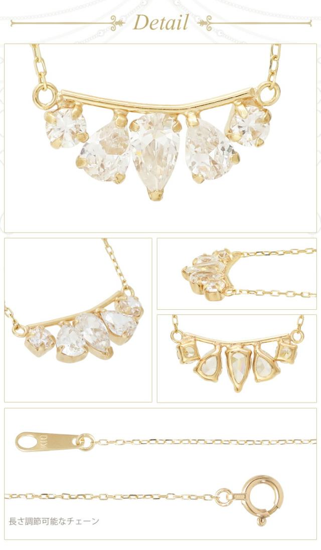 K10YG ゴールド レディース ネックレス ジルコニア フェミニン ラグジュアリー