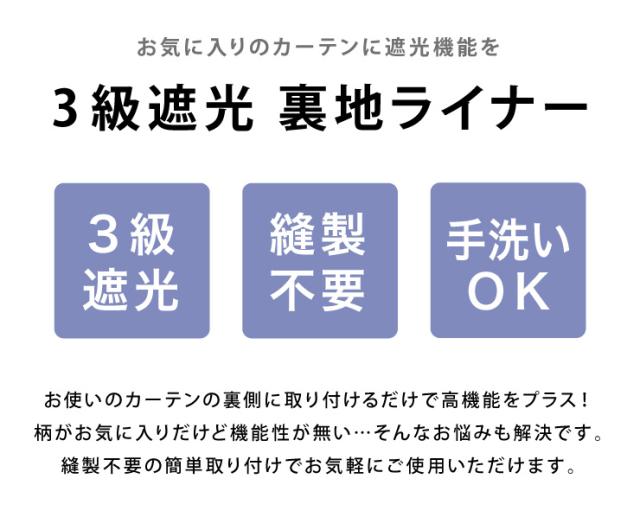 3級遮光 裏地ライナー 縫製不要取り付け簡単 1枚単品 遮光3級 UVカット 断熱 保温 防音 丸洗い可能 ウォッシャブル 簡単取り付け 4サイズ展開 幅105 丈105 丈130 丈173 丈195 後付け裏地カーテン カーテン【送料無料】