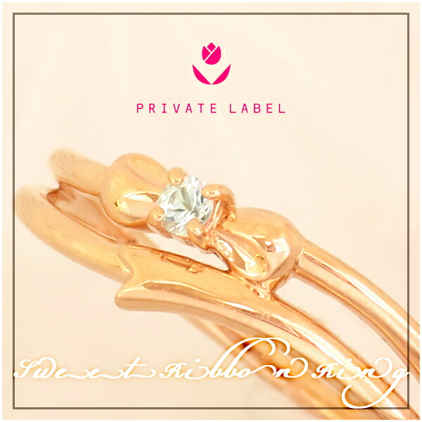 k10ピンクゴールドリボン ホワイトサファイア リング 7 9 11号 プライベートレーベル レディース 女性用 指輪 プレゼント