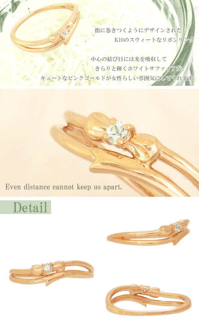 k10 ピンクゴールド リング シンプル ホワイトサファイア リボン かわいい フェミニン カジュアル スウィート