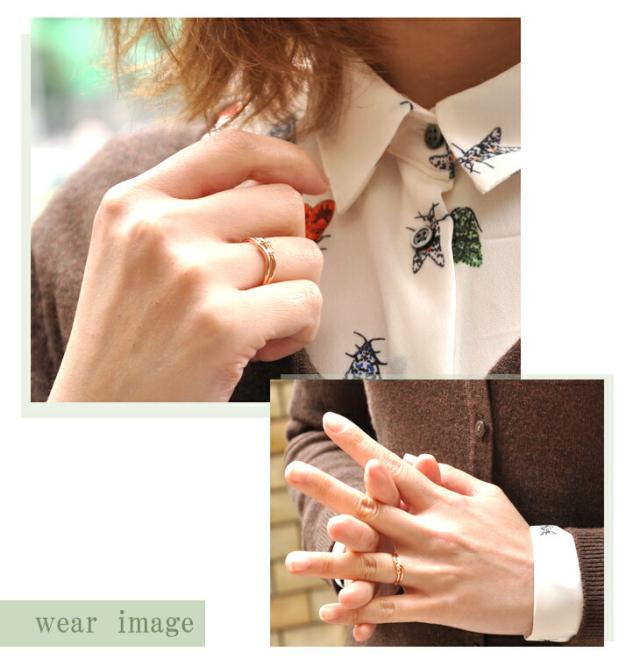 指に巻きつくようにデザインされたK10のスウィートなリボンリング