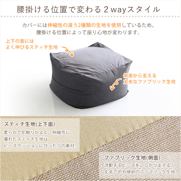 Guimauve ギモーブ キューブ型ビーズクッション Lサイズ (クッション ビーズ 日本製 国産 2wayスタイル 伸縮性 スティチ ファブリック 2重構造補充口 ウォッシャブル 洗濯可 ブルー グレー ベージュ レッド おしゃれ おすすめ)
