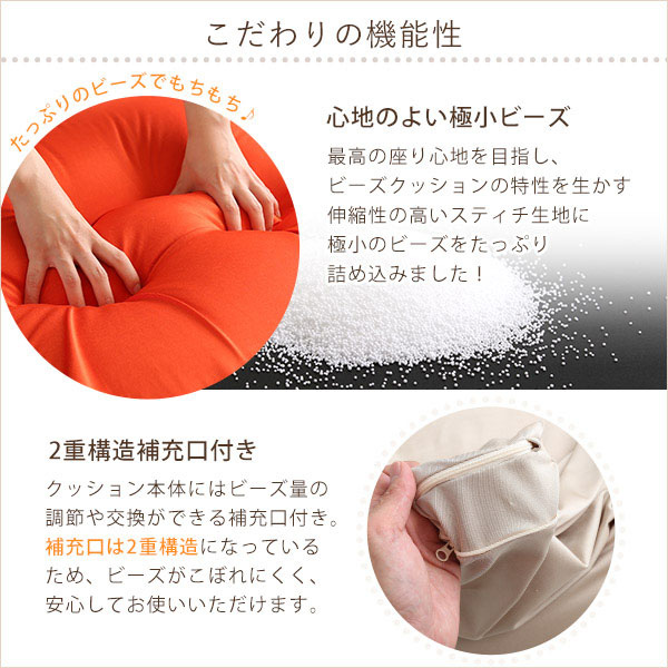 | 材質 | 中材:発泡ポリスチレンビーズ伸縮する生地:ポリエステル88%、ポリエステル 12%伸縮しない生地:ポリエステル 100% |