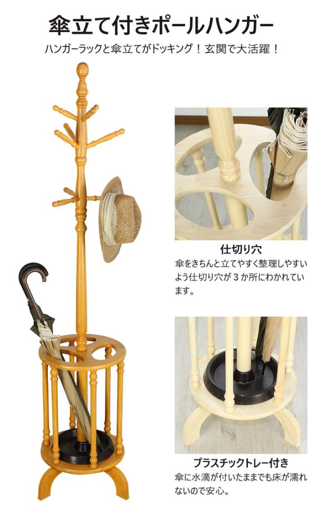 ■キーワード:ポールハンガー 傘立て付 木製ハンガーラック ポールスタンド 洋服掛け コートハンガー 木製 かさ立て 傘立て ポールハンガー ハンガー ラック ロングコート シンプル おしゃれ エレガント 玄関 人気 北欧 エントランス