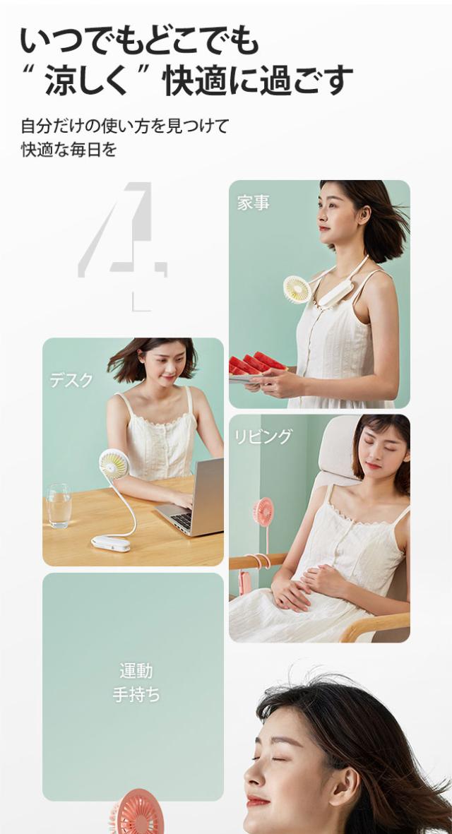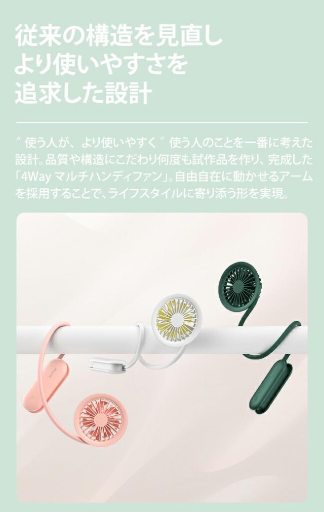 マルチハンディファン 首かけ 首掛け扇風機 ハンズフリー 首掛け ハンズフリーファン ハンディファン ハンディ ポータブル 静音 手持ち扇風機 ハンディーファン ネックバンド 暑さ対策_a