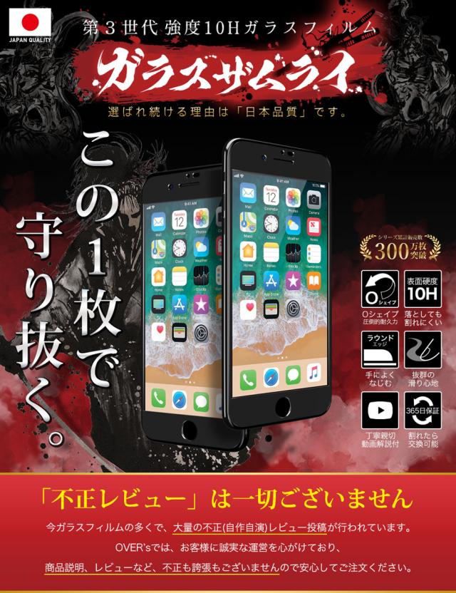 iPhone8 / iPhone7 全面保護 ガラスフィルム 保護フィルム フィルム 全面吸着タイプ 10H ガラスザムライ アイフォン 8 7 全面 保護 液晶保護フィルム OVER`s オーバーズ 黒縁 TP01