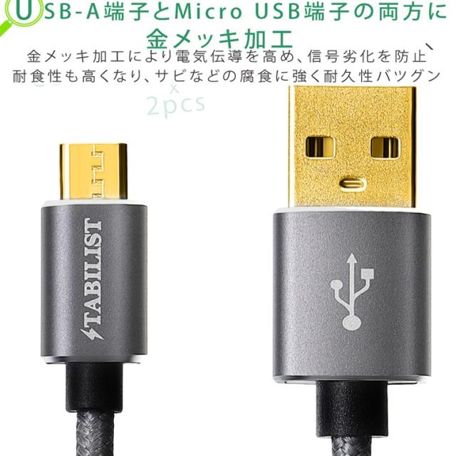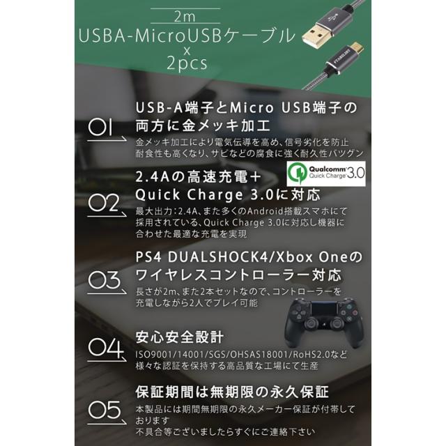 ・長さ: 2m x 2本組 USBA (標準USB) to Micro USB ケーブル 金メッキ加工 急速充電 PS4 Xbox Oneなどのコントローラー対応
