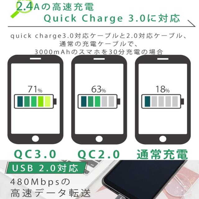 ・2.4Aの急速充電対応 Quickcharge 3.0 QC クイックチャージ