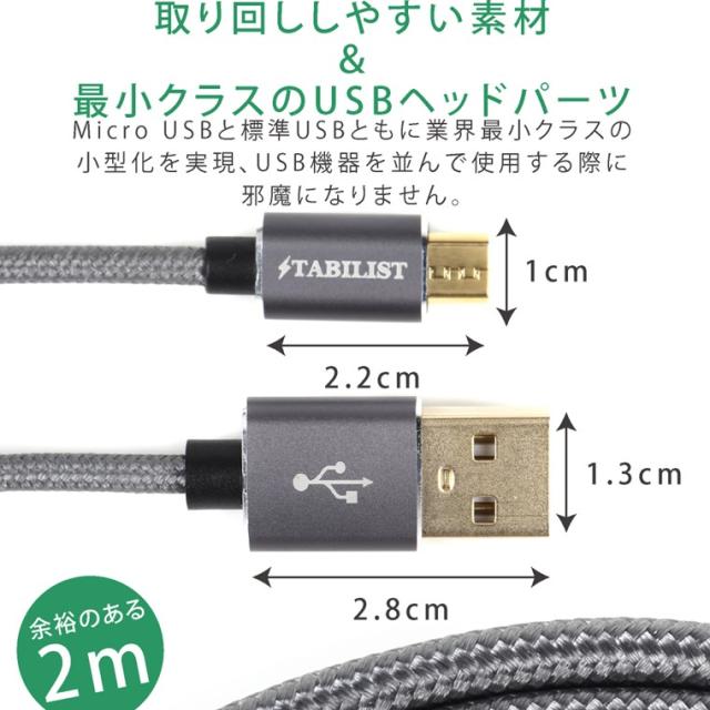 マイクロUSBケーブル 2m 2本組 2.4A急速充電ケーブル Micro usb PS4 Pro プレステ4 コントローラー Xbox One android type-b アンドロイド スマホ b microusb コード タイプb マイクロb microb プレイステーション プロ pro DUALSHOCK4 送料無料 STABILIST スタビリスト