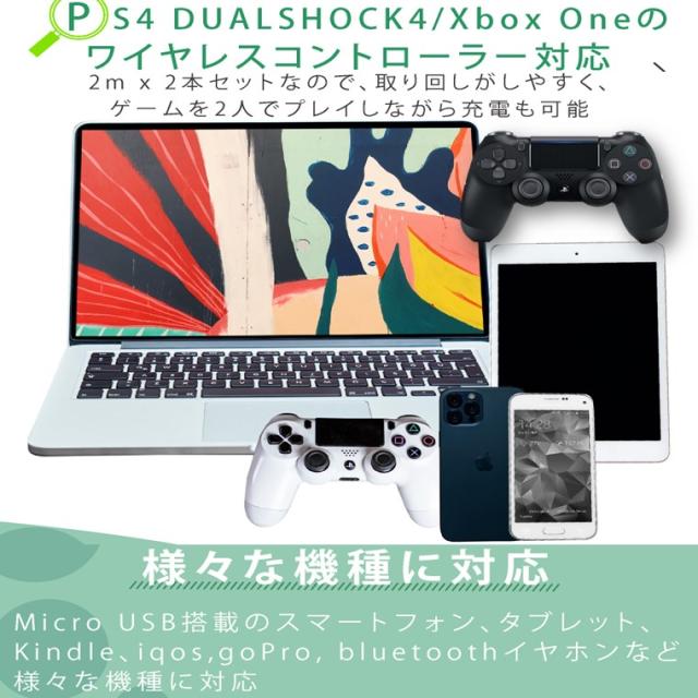 ・PS4 DUALSHOCK4/Xbox Oneのワイヤレスコントローラー対応 : 長さが2mと長く、プレイステーションやXboxなどのコントローラーを充電しながらプレイ可能