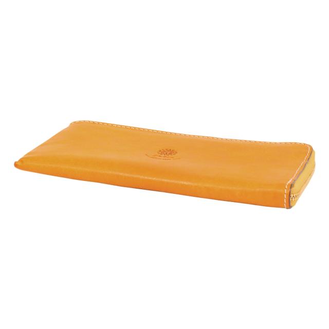 馬蹄と星のモチーフをあしらった、Dakotaらしいカジュアルなお財布。革職人がサンドペーパーと真鍮ブラシでブラッシングをかけ、ほのかに起毛した手触りが特徴的な、イタリアンレザー。そのこだわりの素材を活かすシンプルなデザインに、星と馬蹄のモチーフをあしらったカジュアルなお財布に仕上げました。お使いいただくほどに起毛面が撫でられ、艶が増してゆき、経年変化を楽しめるアイテムです。中央にあしらわれた馬蹄と星のモチーフが印象的な、薄マチ長財布。内側の小銭入れはファスナーレスになっているので、メインファスナーを開けば、お札もカードも小銭もパッと一目で見渡せる、スマートな機能性が人気のデザインです。背面にファスナーポケットがあるので、そこに小銭を収納することもできます。