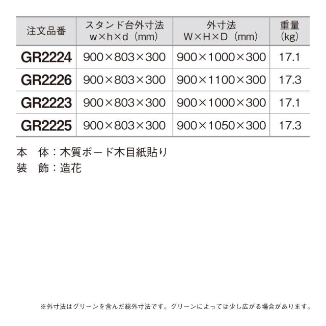 ※グリーンは造花の為、屋内設置でも直射日光や高温により、変色劣化する場合がございます。