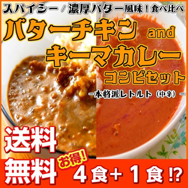 【本格派 キーマカレー(140g)×2食】&【濃厚 バターチキンカレー(150g)×2食】+【いずれか1食付き♪】計5食入り