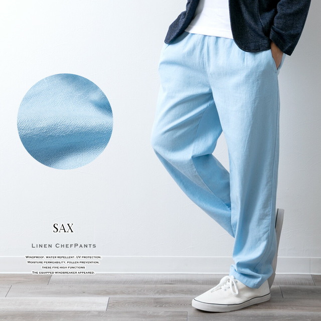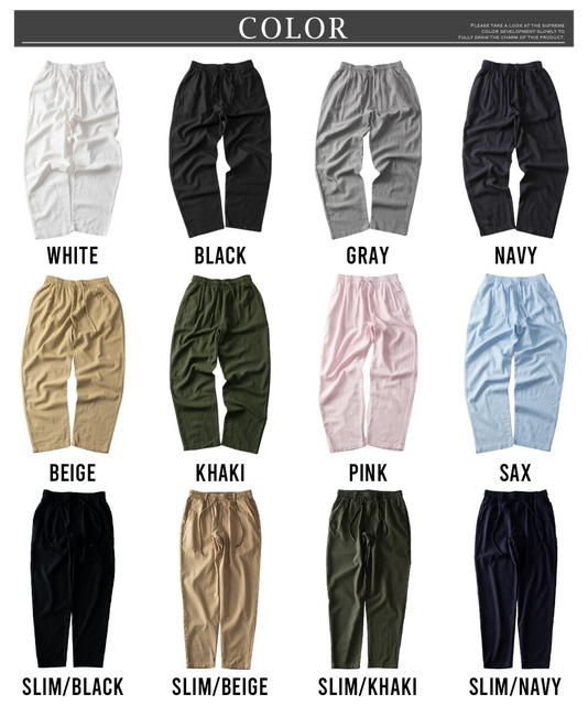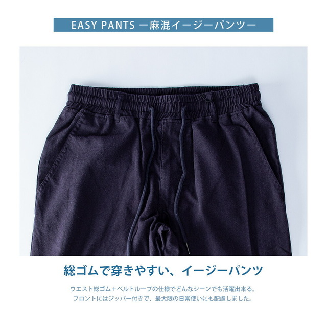 メンズ パンツ シェフパンツ 麻 リネン ゆったり 涼しい ワイドパンツ ゴムウエスト テーパードパンツ 夏 ウエストゴム イージーパンツ テーパード パンツ全12色 NEP おしゃれ チノパンツ 無地 シンプル 黒 白 カーキ ベージュ ホワイト M