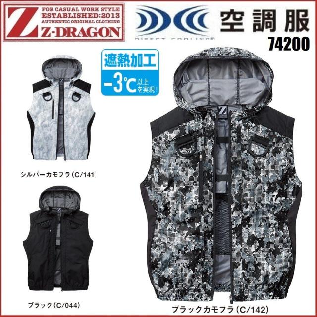 自重堂 74200 (フルハーネス対応) 空調服 (ベストタイプ) (フード付き) Z-DRAGON ジードラゴン SS〜5L(社名ネーム一か所無料)