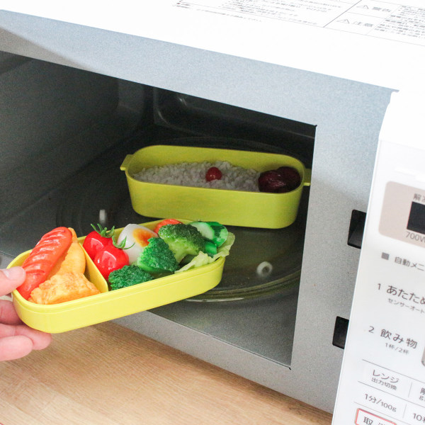 お箸とスプーンが付属しているので、メニューによって使い分けられ、お弁当のバリエーションが広がります。盛り付けしやすい仕切り付きなので、おかずとご飯を分けて入れることができます。仕切りは取り外し可能なので、オムライスやのっけ弁もお楽しみいただけます。