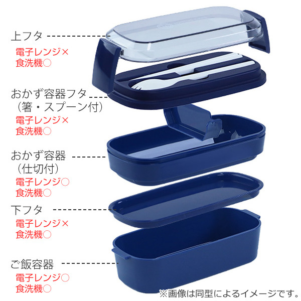 | 備考 | 上フタ・箸:耐熱温度:100度・耐冷温度-30度 上容器フタ:耐熱温度:180度・耐冷温度-40度 上容器・下容器・仕切り:耐熱温度:140度・耐冷温度-20度 下容器フタ・止め具:耐熱温度:110度・耐冷温度-20度 スプーン:耐熱温度:100度・耐冷温度-30度 |