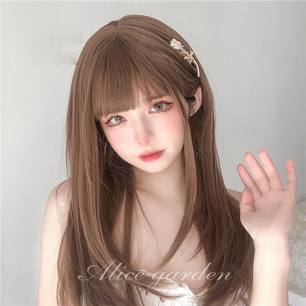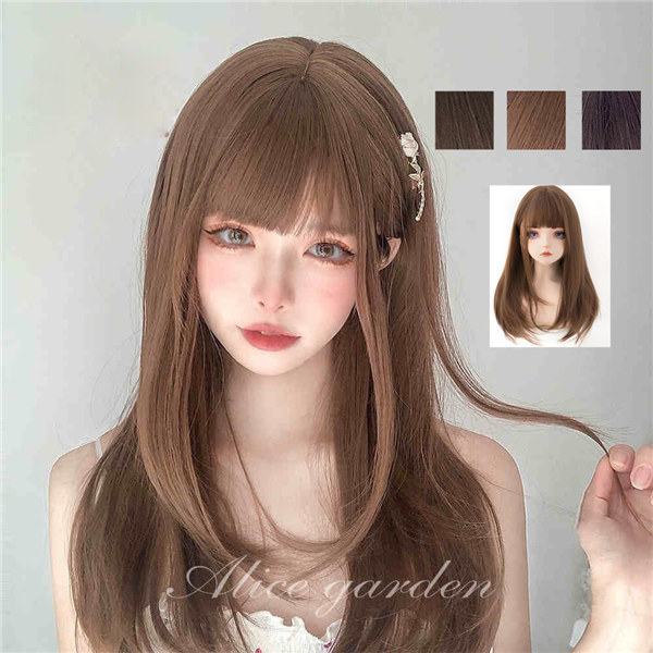 フルウィッグ ロリータ oita ぱっつん前髪 髪 茶髪 前髪 ぱっつん 日常 ウィッグ 原宿風 かつらブラウン レディース コスプレ 普段使い 可愛い ロング 耐熱ウィッグ コスチューム 仮装 大人 女の子 変装 女装 ストレート
