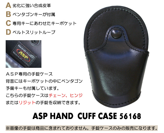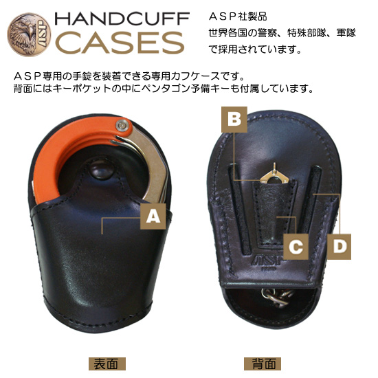 ASPのチェーン、ヒンジ手錠全てに適合します。 ケース背面にはポケットが標準で装備されていて、5角形の頭が付いた手錠のカギが収納されています。