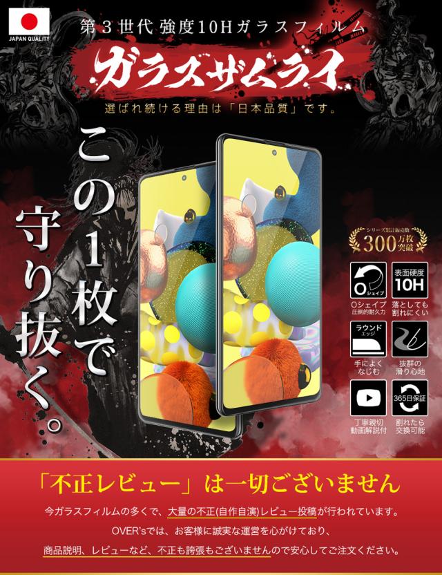 Galaxy A51 5G SC-54A SCG07 全面保護 ガラスフィルム 保護フィルム フィルム 全面吸着タイプ 10H ガラスザムライ ギャラクシー 全面 保護 液晶保護フィルム OVER`s オーバーズ 黒縁 TP01