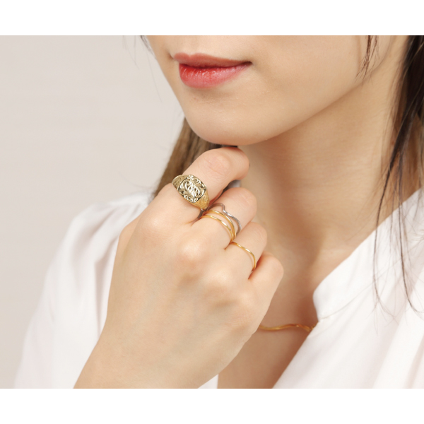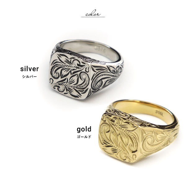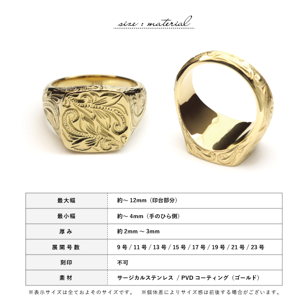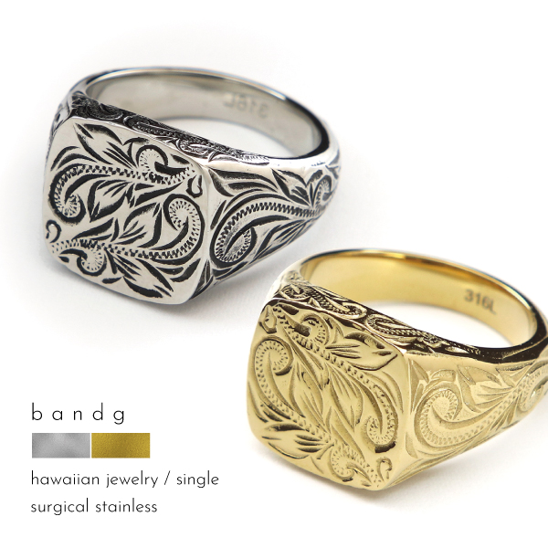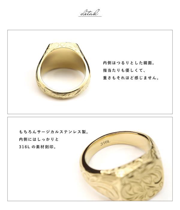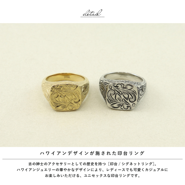 リング つけっぱなし ステンレス サージカルステンレス 医療用ステンレス 金属アレルギー アレルギーフリー 316L ハワイアンジュエリー 指輪 ハワイ ハワイアン 印台リング 印台 シグネットリング シグネット シルバー ゴールド