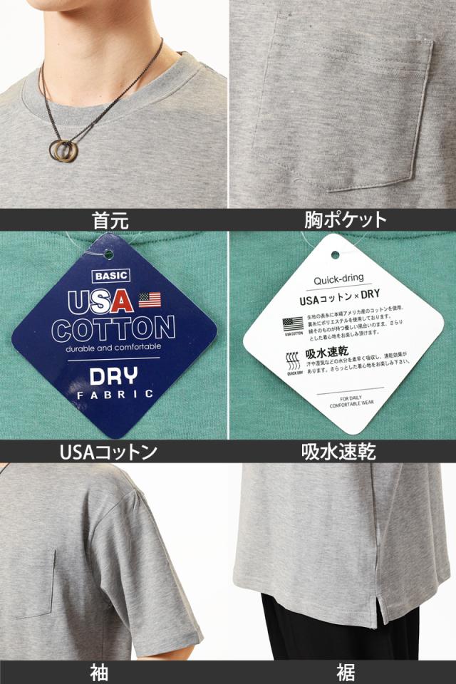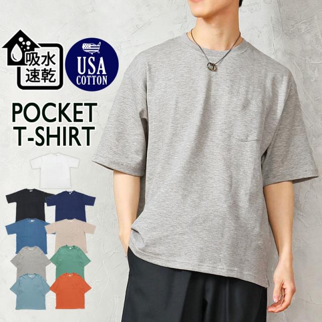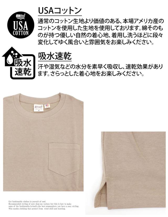 上質感あふれるUSAコットン素材に吸水速乾加工を施した無地のポケット付の半袖カットソー!