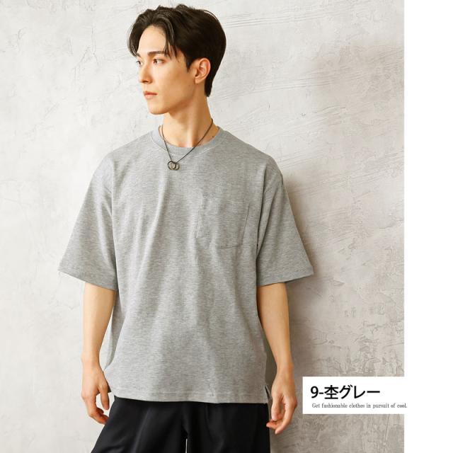 春 夏 新作 ビッグシルエット Tシャツ メンズ 吸水速乾 ゆったりめ 送料無料 ビッグシルエット ドロップショルダー オーバーサイズ tシャツ USAコットン ポケット付き クルーネック 無地 5分袖Tシャツ カットソー ゆうパケ