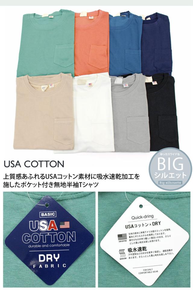 | 特徴 | メンズ半袖Tシャツ/ビッグシルエット 上質感あふれるUSAコットン素材に吸水速乾加工を施した無地のポケット付の半袖カットソー! トレンドのワイドシルエットドロップショルダーデザイン! 通常のコットンより価値のある、本場のUSAコットンを使用した天竺素材!綿そのものが持つ優しい自然の着心地、 着用し洗うほど段々変化していくUSAコットンならではの風合いと素材感が楽しめます。 汗や湿度などの水分を素早く吸収し速乾効果がある吸水速乾素材!汗ばむ季節でも快適な着心地! 男女兼用で着用でき、無地なのできれい目カジュアルからデイリーカジュアルまで 幅広いジャンルで活用できるUSAコットン無地半袖Tシャツです。 |