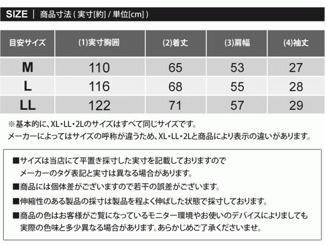 ※基本的に、XL・LL・2Lのサイズはすべて同じサイズです。