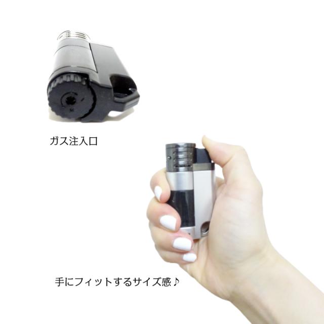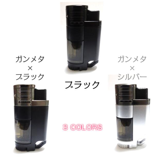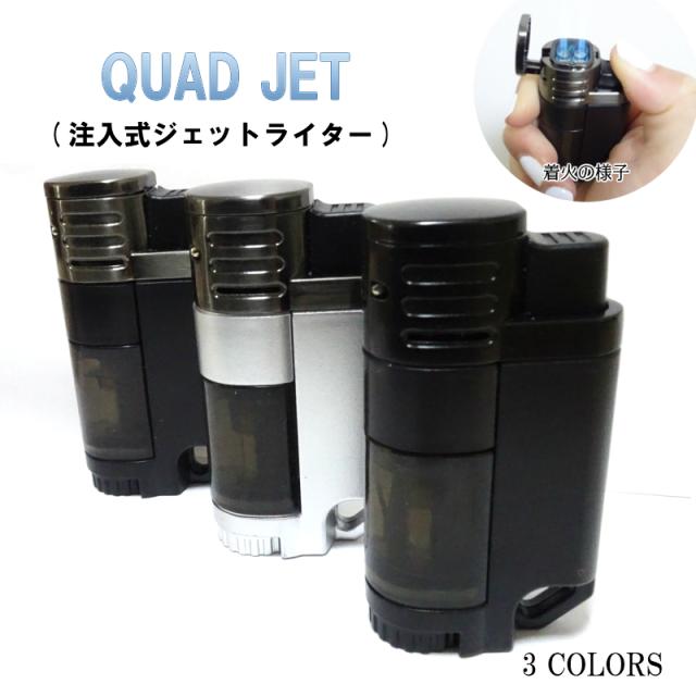 ガスライター クワッド ジェット ターボライター 3カラー ブラック ガンメタ シルバー 4本炎 ガス注入式 面白ライター 珍しい