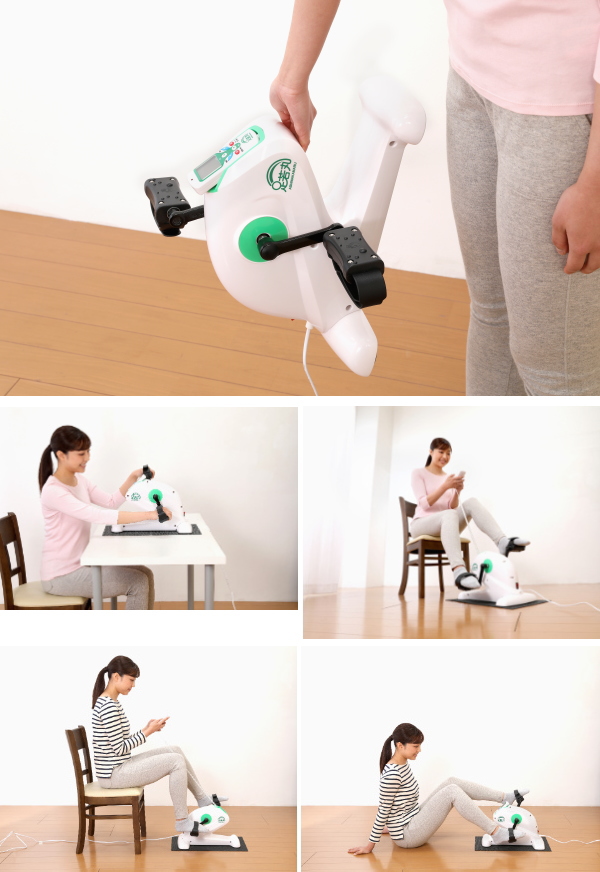 椅子に座って、寝転んで、足を乗せるだけでラクラク運動!予めプログラムされた5つのモードで、日々の運動量に+1,000歩を叶える電動サイクリングマシーン。二の腕の運動、ちょっとした運動がしたいとき、全身を動かせないときのリハビリなど、運動不足解消におすすめです♪モーターで運動をアシストするので膝や脚の関節に負担がかからず、筋力回復のリハビリにも使用でき、ご家族皆さんで安心、安全に運動ができます。組立も簡単です。