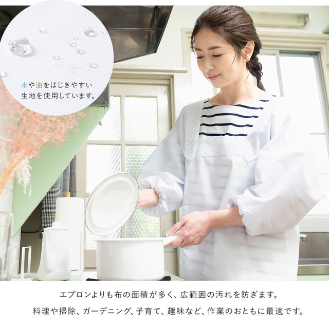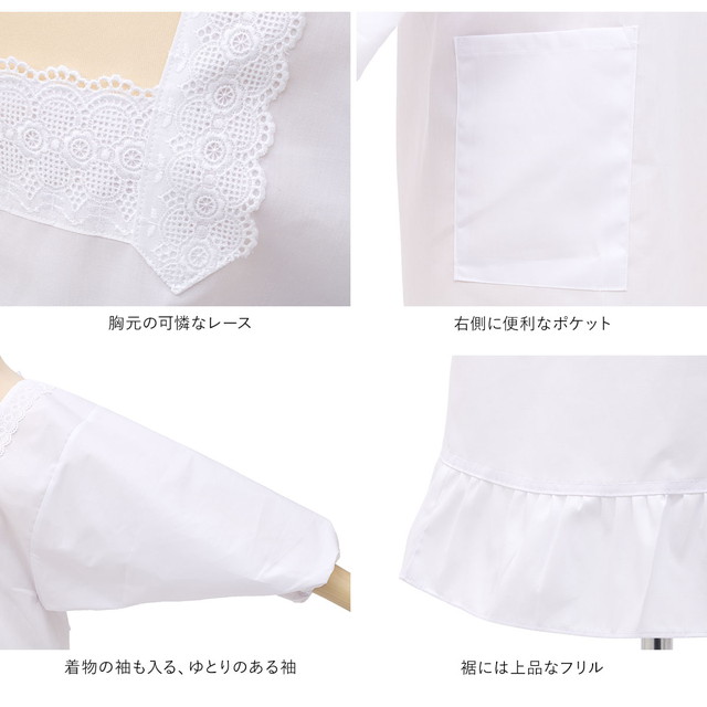 割烹着 おしゃれ 白 レース フリル 撥水 撥油 女性 日本製 無地 通年 着物 台所 キッチン 掃除 割烹着のトリセツ メール便 送料無料