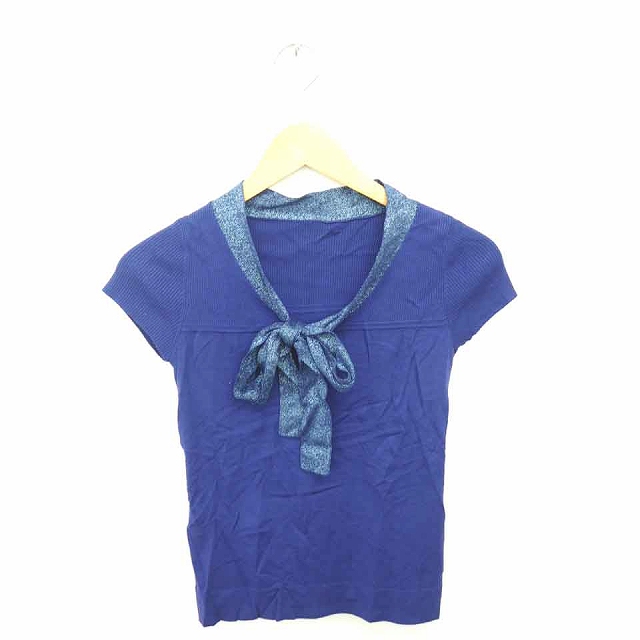 【中古】ニット セーター Vネック ボウタイ ラメ 薄手 半袖 M 紫 パープル /TT39 N レディース