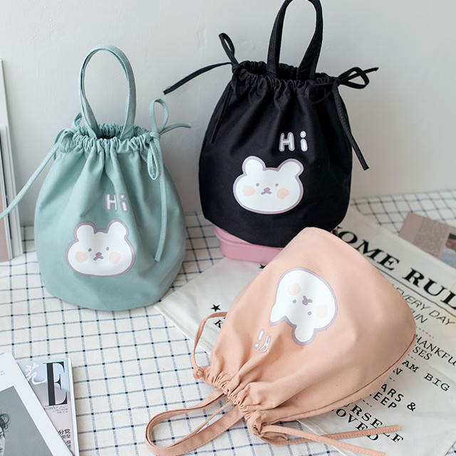 ランチバッグ 巾着 3色 ブラック ピンク ブルー 送料無料 メール便 代引き不可
